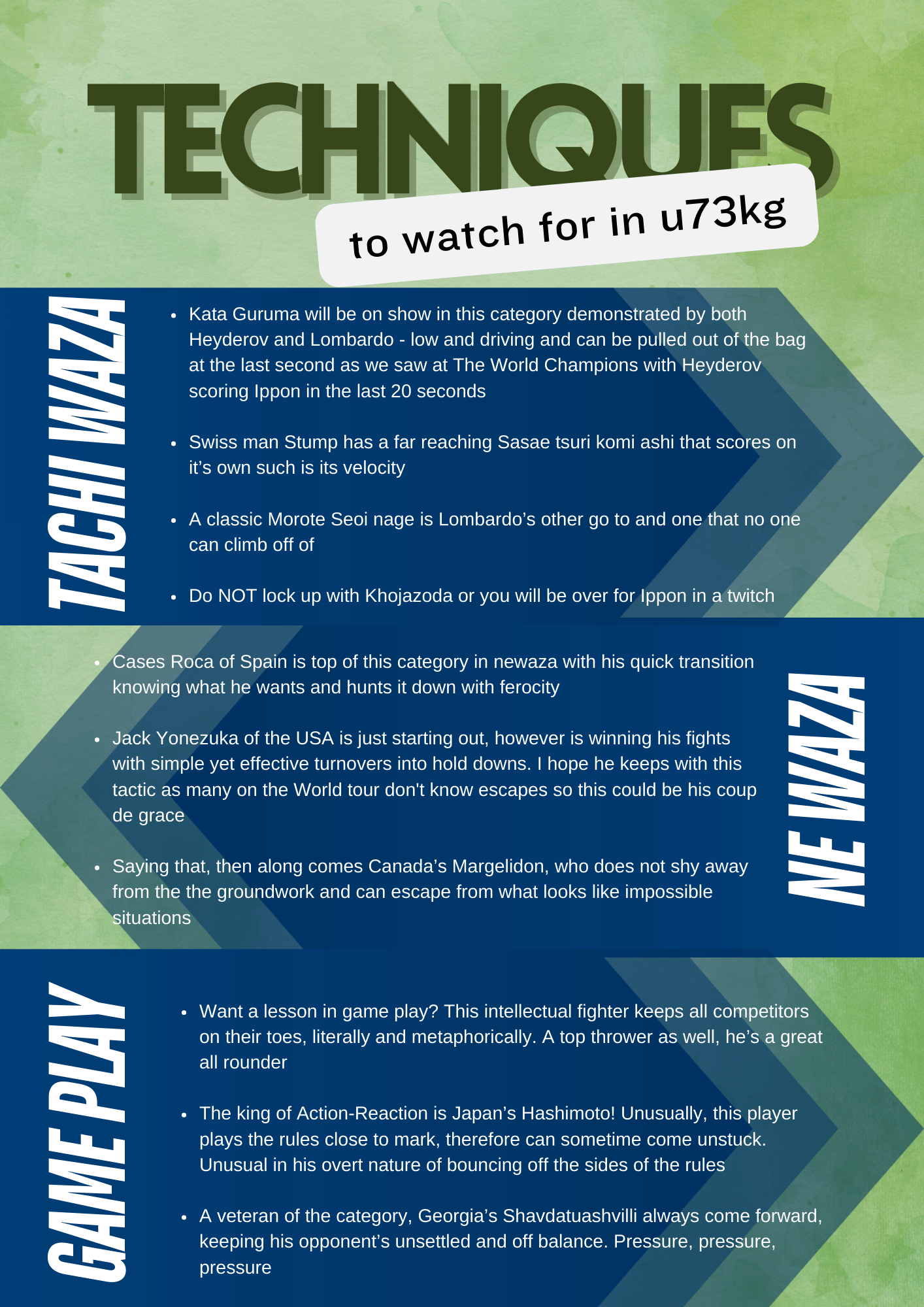Check out the Men u73kg on July 29th